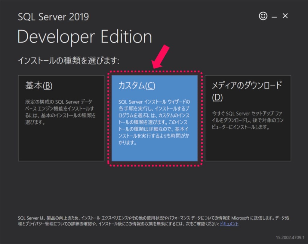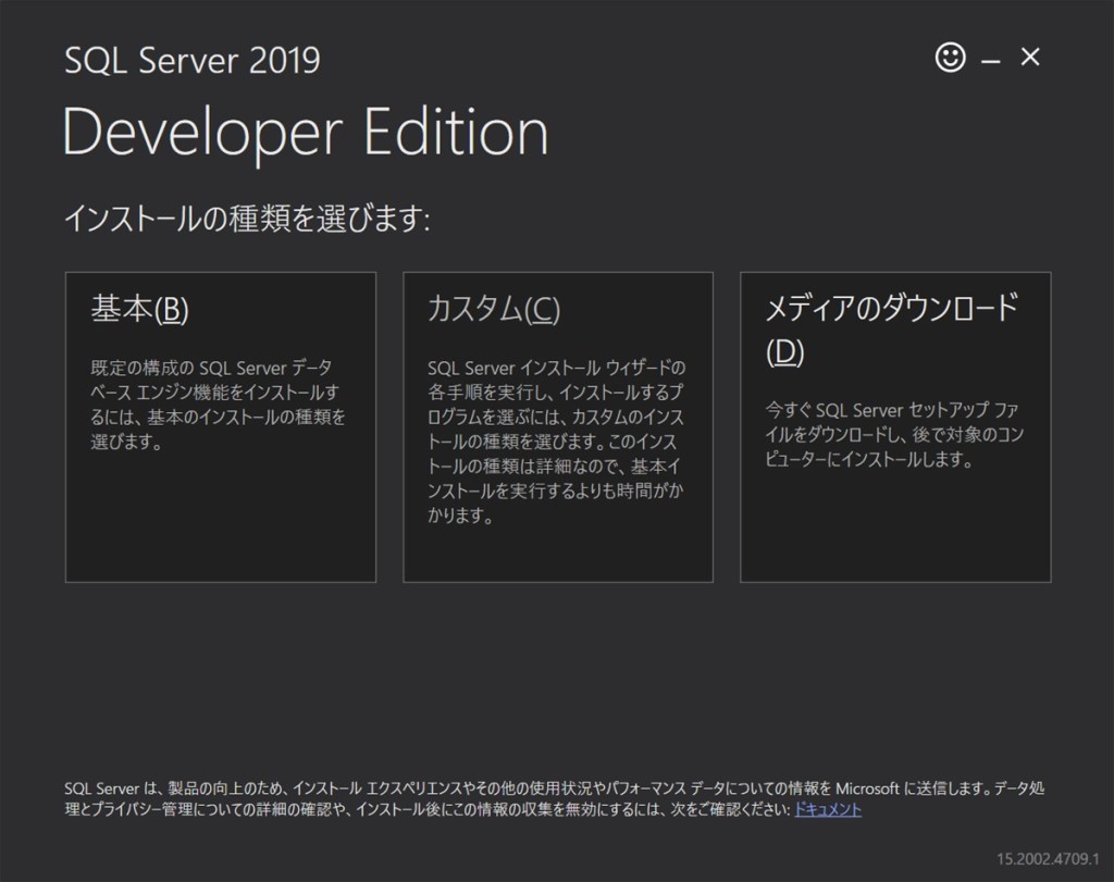 この項では「SQL Server 2019 Developer Edition」のインストーラー取得~インストール(セットアップ)までを記載します。