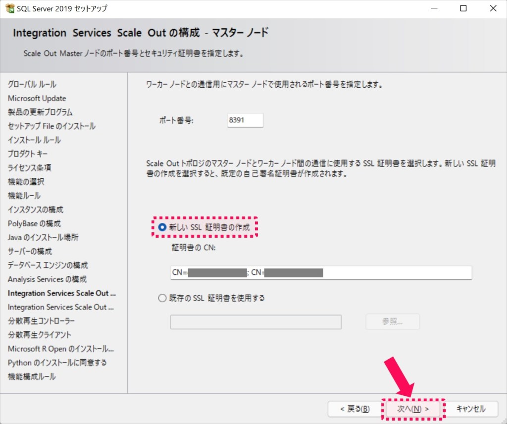 (16)「Integration Services Scale Out の構成 – マスターノード」画面