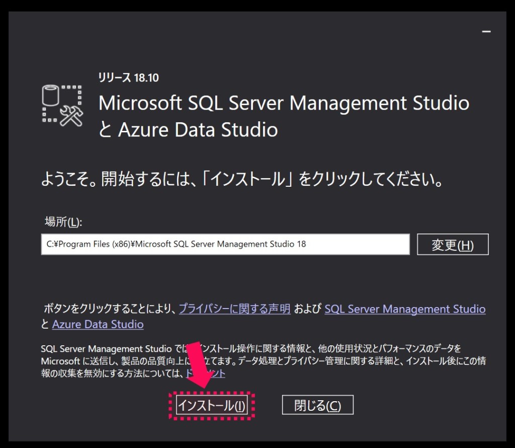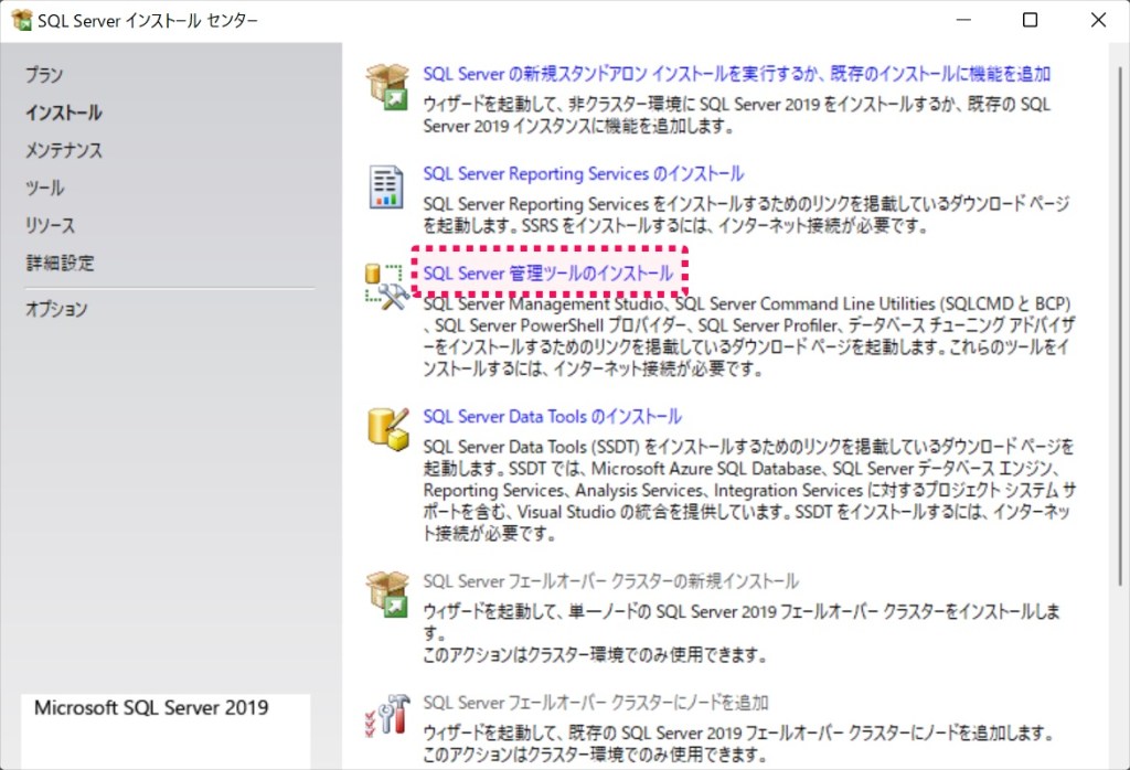 この項では「SQL Server Management Studio」のインストーラー取得~インストール(セットアップ)までを記載します。